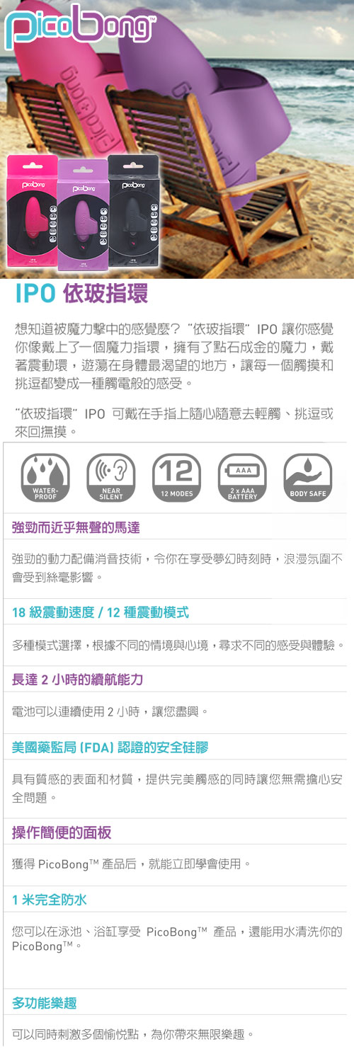 .主商品:瑞典PicoBong -IPO FINGER VIBE 依玻 強震魔力指環-紫*1