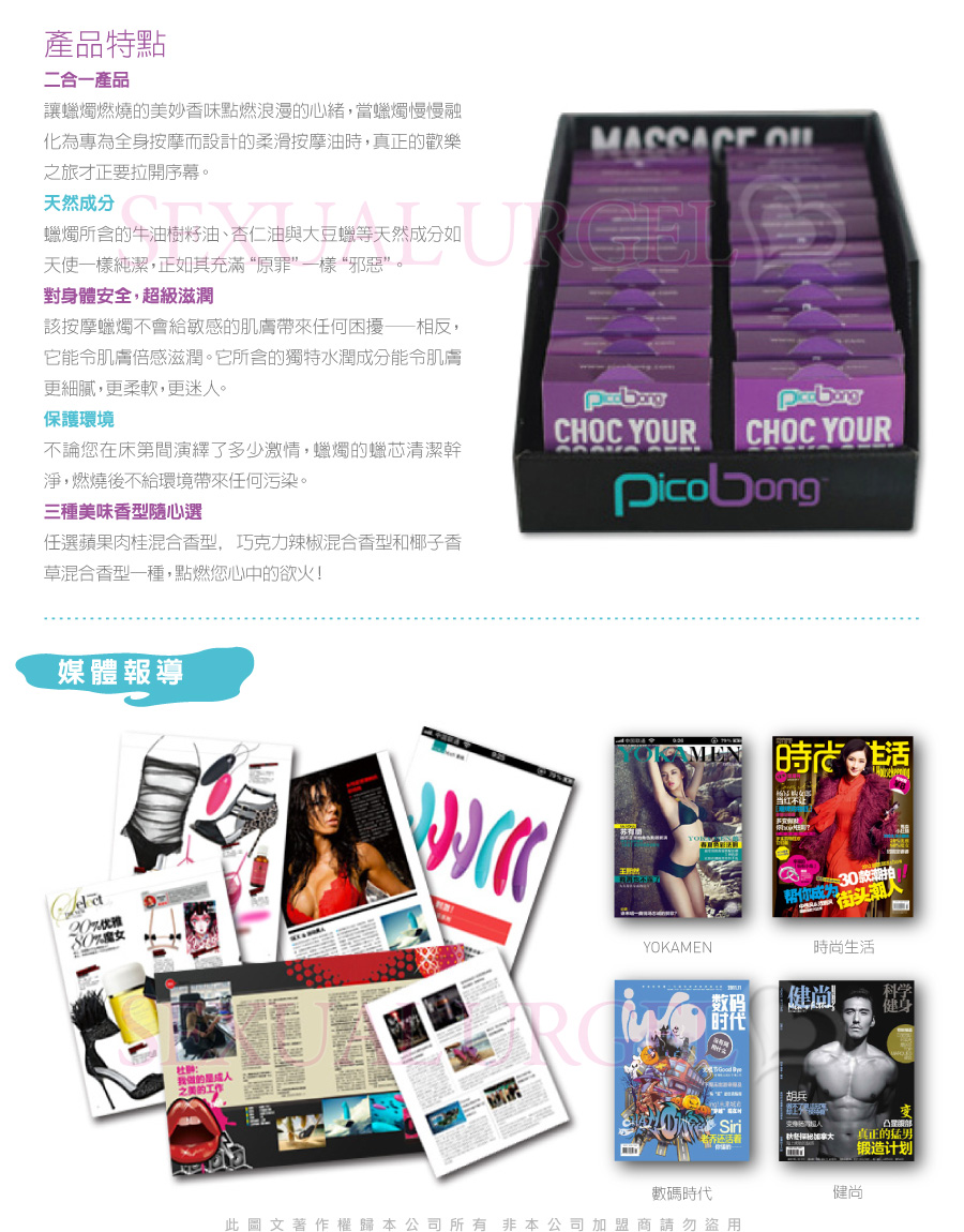 .主商品:瑞典PicoBong-Massage Oil Candle蠟燭情趣按摩油15ML-巧克力辣椒