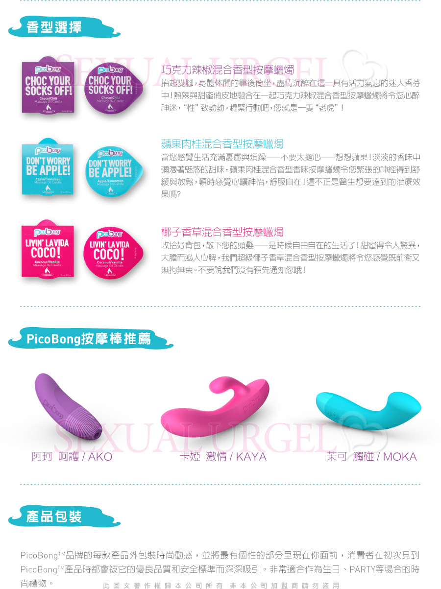 按摩油。不論是想製造驚喜還是準備冒險,沒有皮克朋按摩蠟燭的熱烈燃燒,