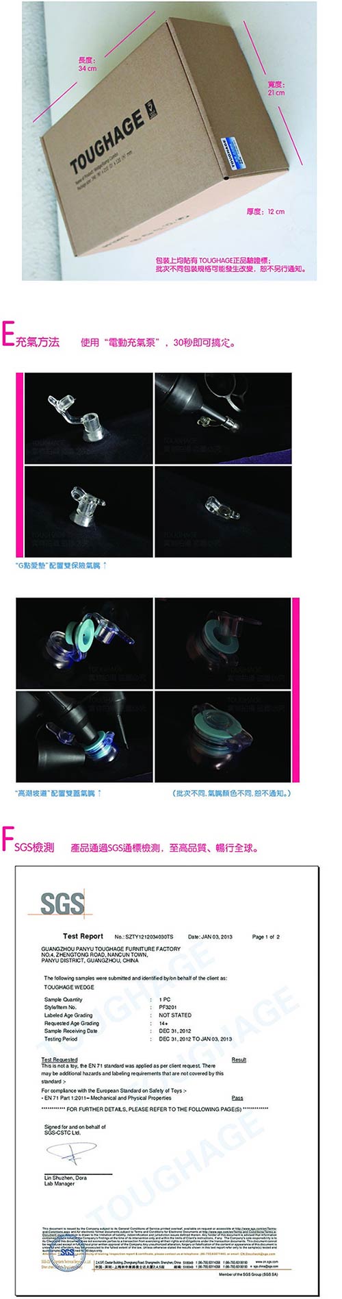 無論平躺、側臥、翹臀或俯首,「坡道愛墊組合」帶來的愉悅無以言表。 TOUGHAGE美妙的設計開放你的身體,喚起你的情慾,之所謂性愛無止境,獵奇心理和 探索創新精神將為你們帶來大滿足!