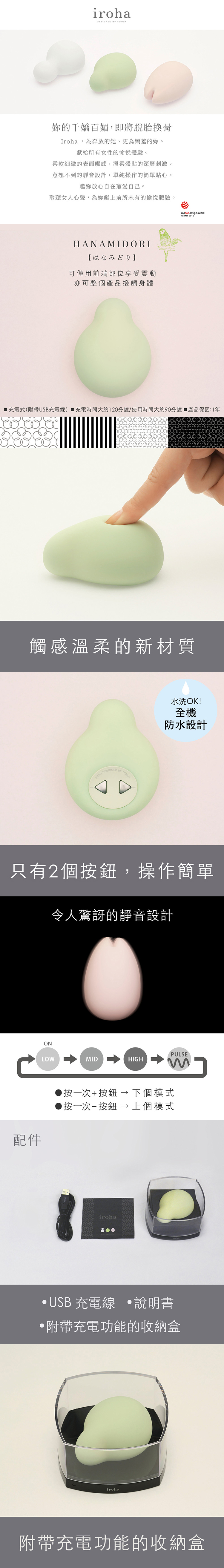 iroha是為了給所有女性帶來「愉悅」而誕生的女性專用娛樂產品,對身體皮膚的觸感柔軟,沒有負擔超凡的靜音設計,操作簡單、易上手的功能設計,讓女生可更安心地使用,