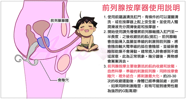 .成人雜誌推薦的男性 G點刺激棒,符合人體工學,可以直接刺激男性最敏感的攝護腺等高快感地帶,利用直腸括約肌收縮原理,讓男性朋友體驗無射精、重複式、全身性的快感!在美國許多使用者均給予很好的評價,並且在許多論壇廣泛討論!