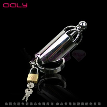 視效好,下傾的設計可很好的隱藏在衣服下長期佩帶,即使夏季只穿一短褲,也看不出什麼來,顏色逞亮,高貴,冰冷的金屬,一個金屬鳥籠加上一個合金卡環,將愛人牢牢鎖住