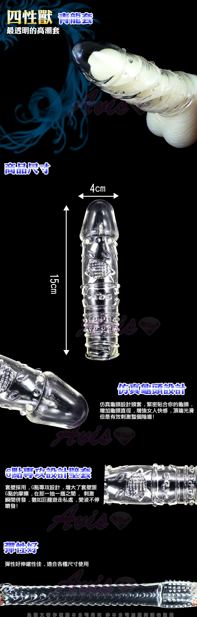 .商品名稱:性愛四性獸 超薄透明加長套 青龍套