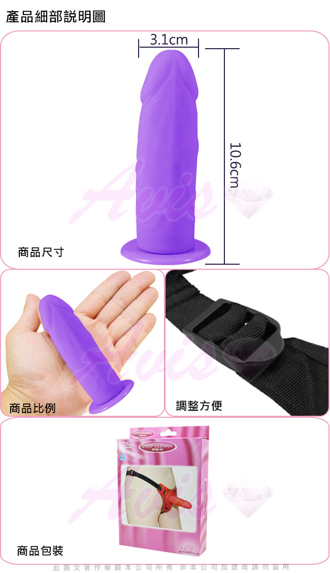 .商品名稱:APHRODISIA 活潑小弟弟 穿戴逼真型按摩棒-紫   *1
