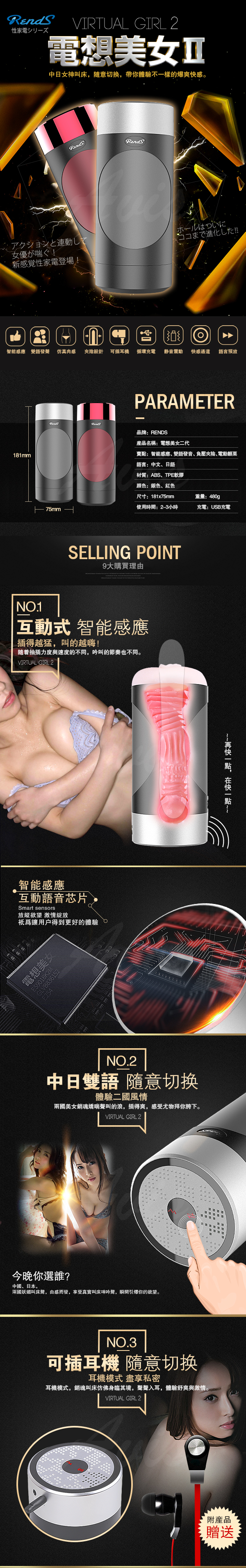 日本RENDS-電想美女2代 6段變頻中日發音負壓陰縮震動自慰杯-紅