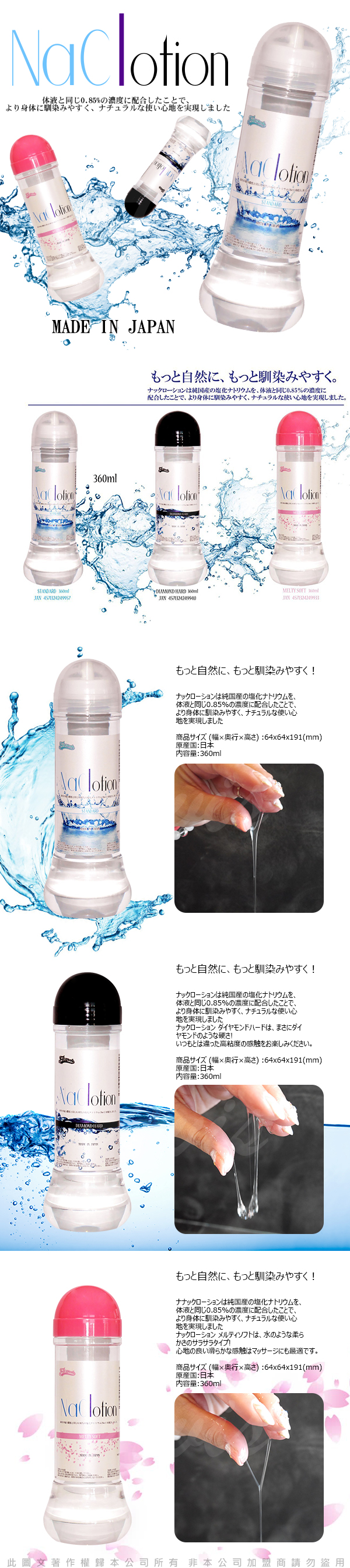 .主商品:日本原裝NaClotion 自然感覺 潤滑液360ml MELTY SOFT 低黏度/水潤型 粉