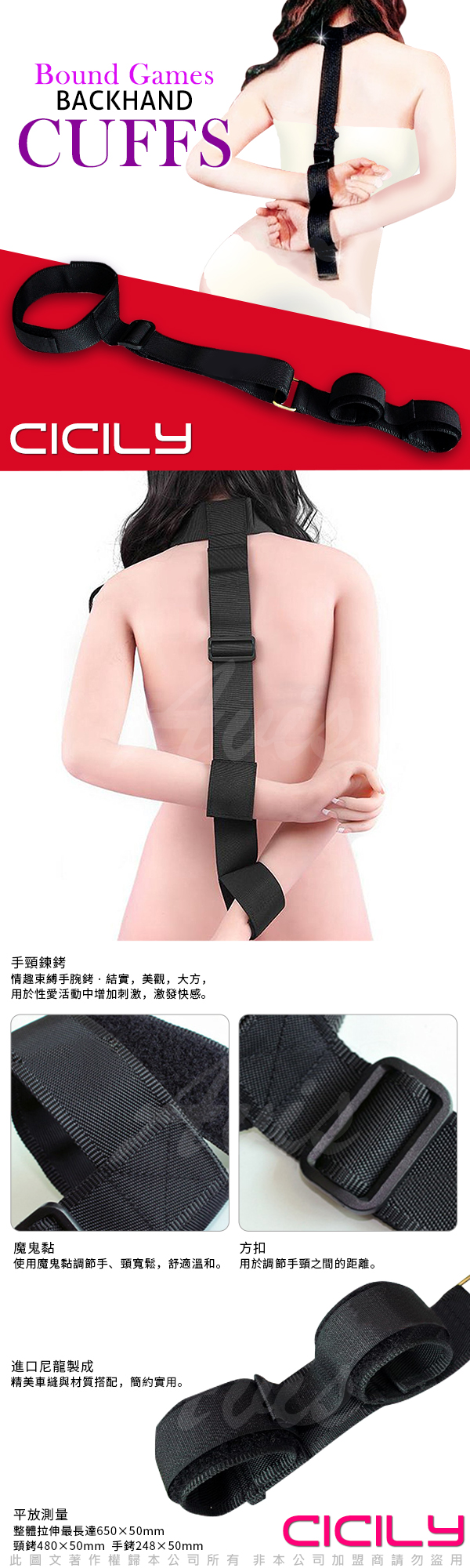 .商品內容:虐戀精品CICILY 反手背銬+脖子束縛綁帶 BDSM道具
