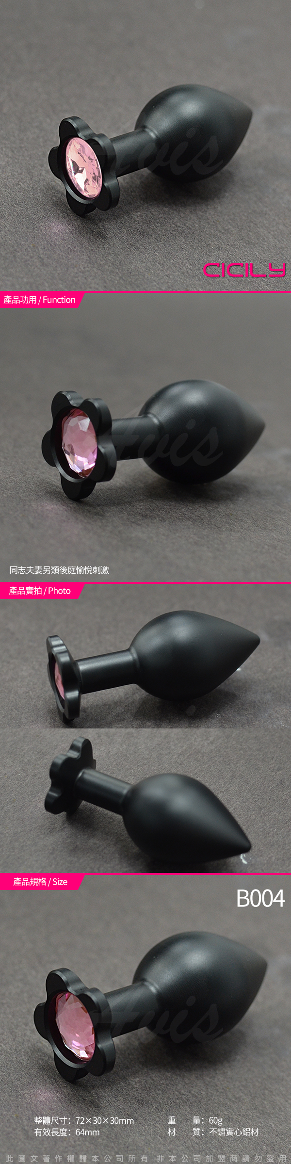 .商品名稱:CICILY 後庭小花 金屬寶石後庭塞 黑 錐形 小