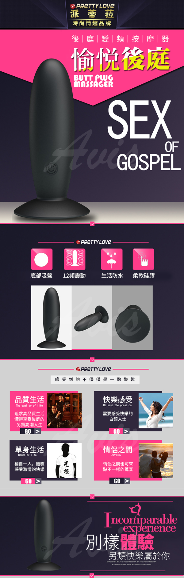 12種方式 多種自由 對後庭進行震動按摩