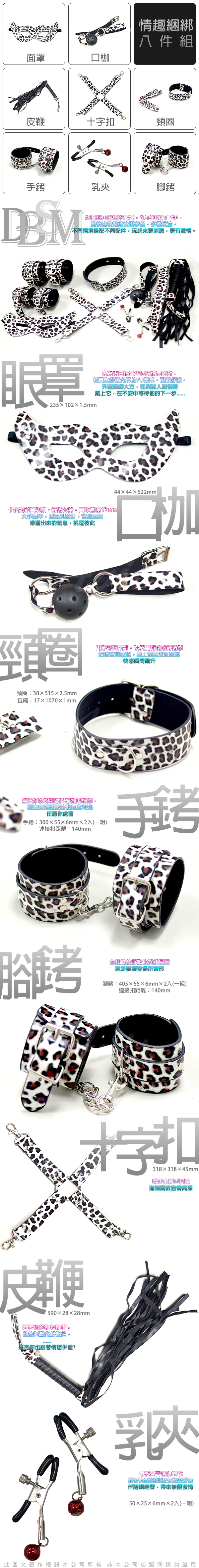虐戀精品CICILY SM帝國 面罩/口塞/皮鞭/十字扣/手銬/乳夾/頸圈/腳銬 八件組 豹紋款