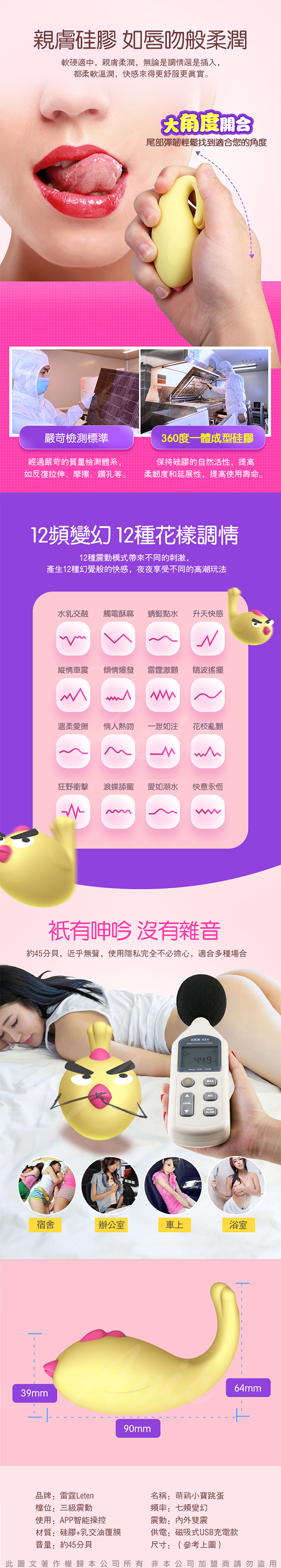 .商品內容:香港LETEN 萌雞小寶 性愛無線跳蛋 萌動版 磁吸式USB充電 小怪獸 怪獸趴 跳跳小寵物