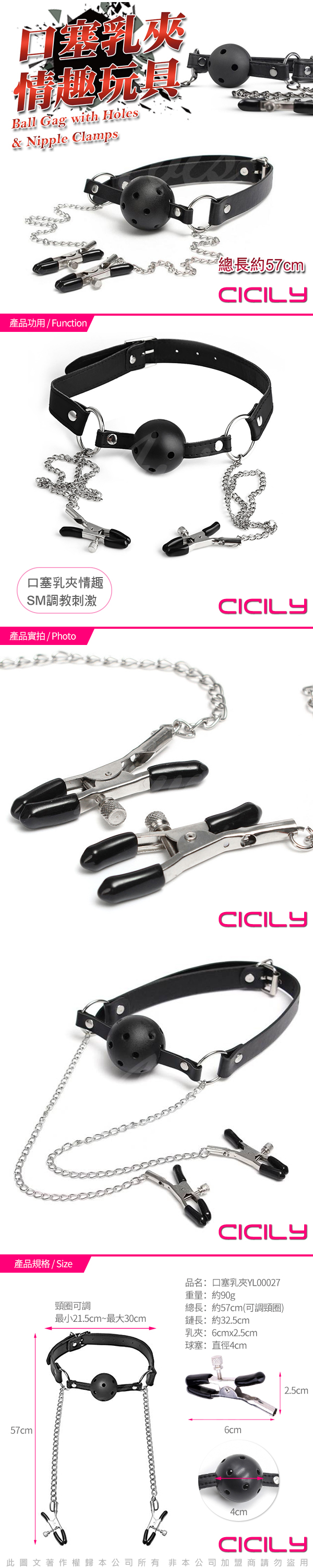 虐戀精品CICILY網眼口塞+不銹鋼金屬鏈乳夾(黑)