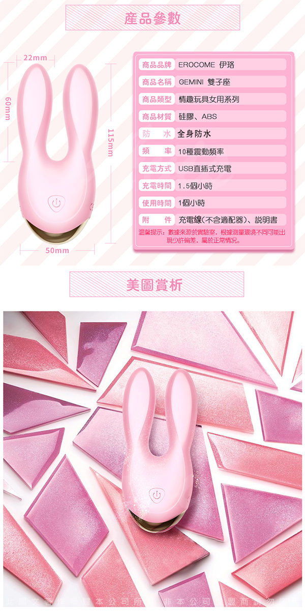 .主商品:EROCOME伊珞 雙子座GEMINI 10段變頻雙馬達防水萌兔跳蛋