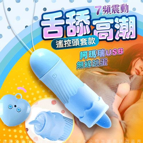 .商品名稱:精靈遊戲 7段變頻 USB無線遙控跳蛋 舌舔頭套款 藍