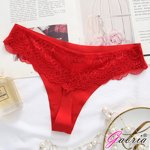 【Gaoria】寵愛甜心 無痕蕾絲花瓣冰絲 丁字褲 紅