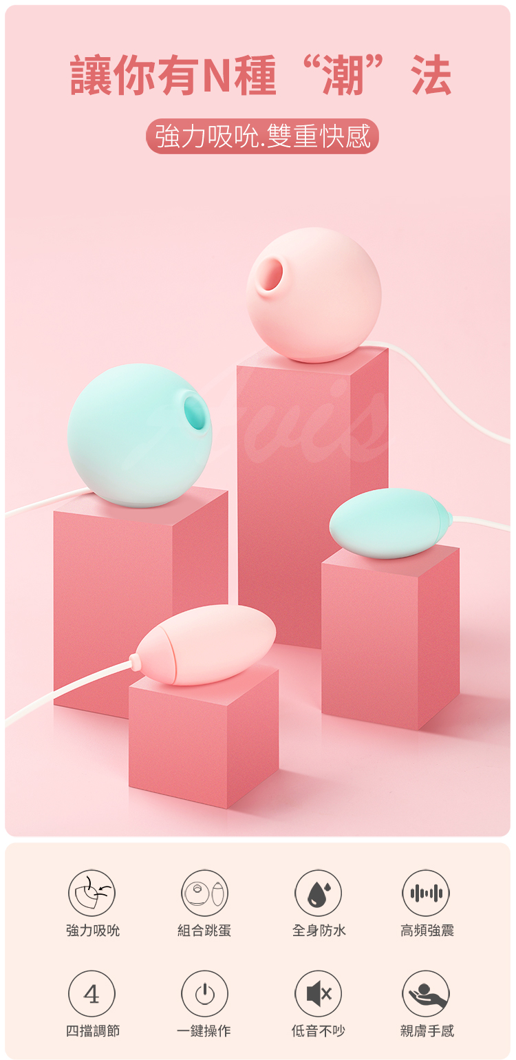 高顏值組合跳蛋直搗靈魂深處的高潮玩法吸吮震動二合一。採用SONIC聲波吸吮每次震動和模式吸吮的感受能傳遞到私密核心部位讓神經豐富的核心部位得到更多的滿足喔~兩個部位雙重體感3檔速度與10種頻率循序漸進,陣陣酥麻蔓延擴散。外出可攜帶,精巧收納更貼心僅需一隻手就可掌握喔