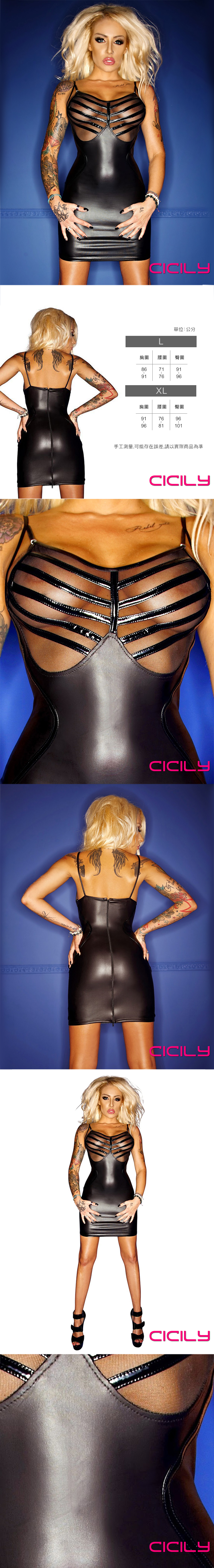 CICILY 女王心境 透視網紗吊帶連衣短裙 漆皮膠衣 L