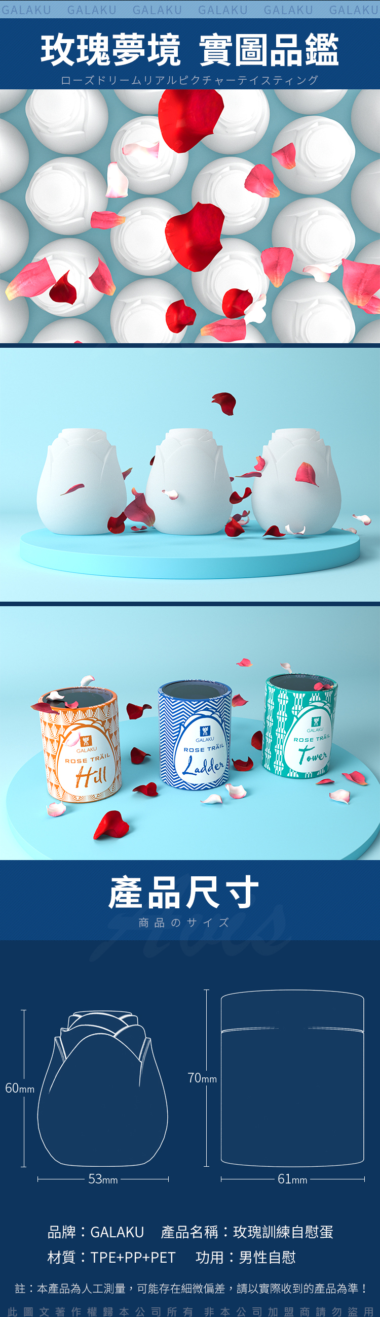 品牌:GALAKU產品名稱:玫瑰訓練自慰蛋材質:TPE+PP+PET功用:男性自慰註:本產品為人工測量,可能存在細微偏差,請實際收到的產品為準!