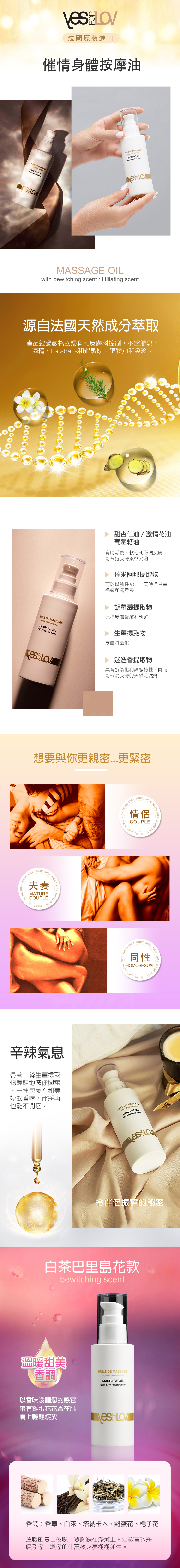 獨特的YESFORLOV按摩油經特別配製,可喚醒您的欲望感官。
