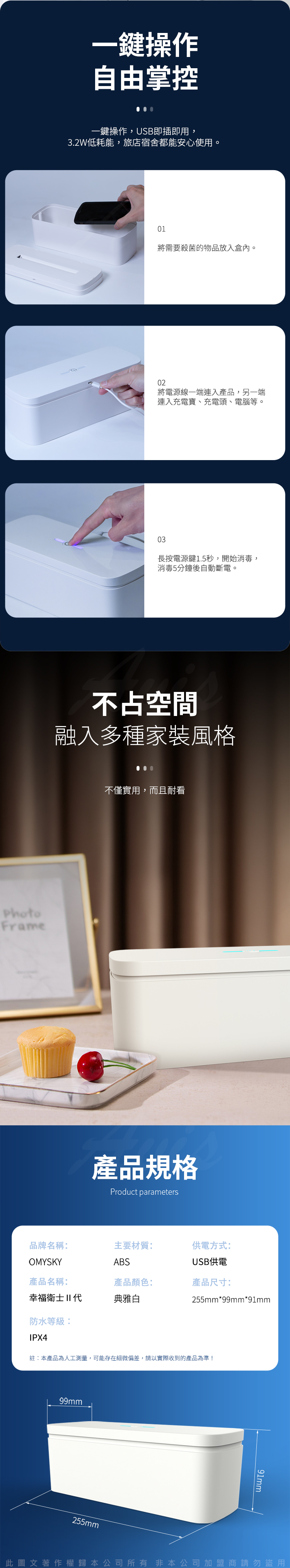品名:OmySky|紫外線消毒盒|USB供電款