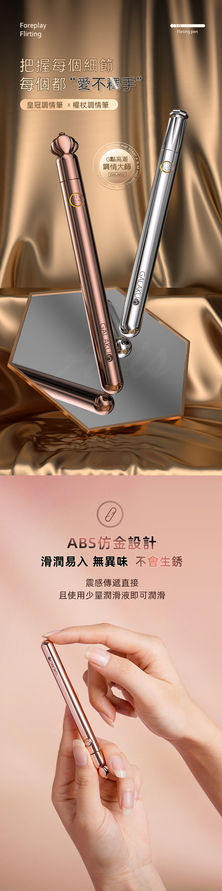 GALAKU|權杖10段變頻|震動調情筆 玫瑰金