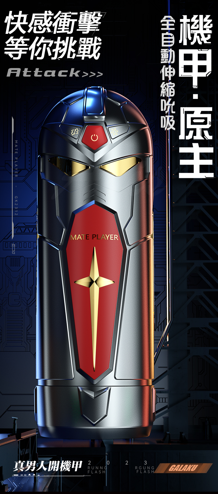 產品名稱:GALAKU|機甲原主 伸縮震動|智能互動飛機杯 黑