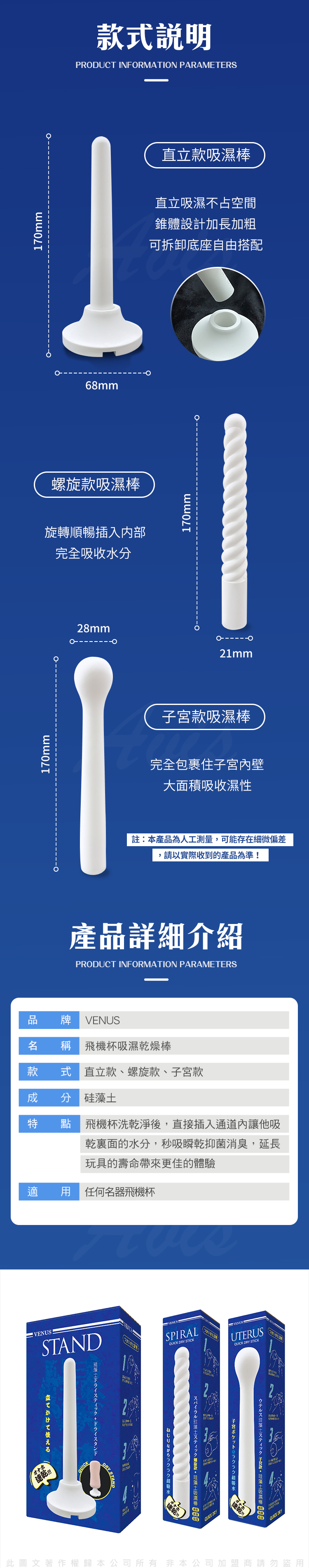 名稱:VENUS|飛機杯乾燥吸濕棒|硅藻土棒-螺旋款