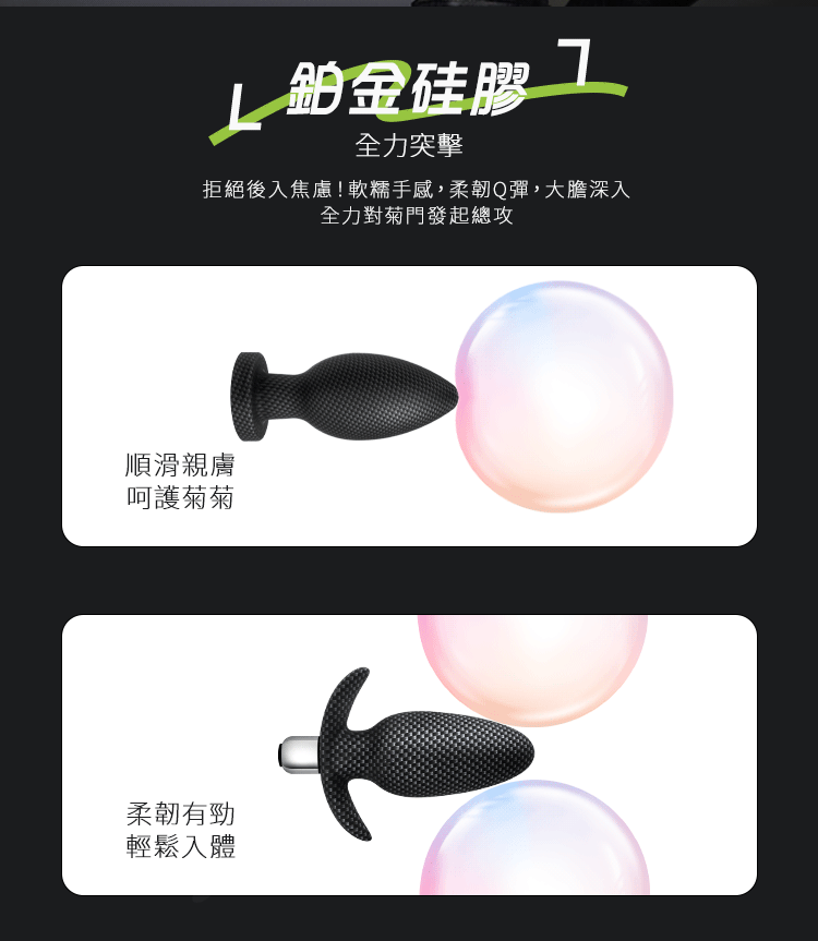 七大人體工學,挑戰極限。頭部採用錐形設計,融入體內,尾部底座流線順暢,完美貼合菊菊,帶來更深入的體驗,實現您的「無射」目標。尖端設計倍加護理菊菊,頭部錐形入體順滑,中段提高感受,圓潤體感令人滿足。底座防止過深入體內,並具防滑設計,確保使用的安全可靠。