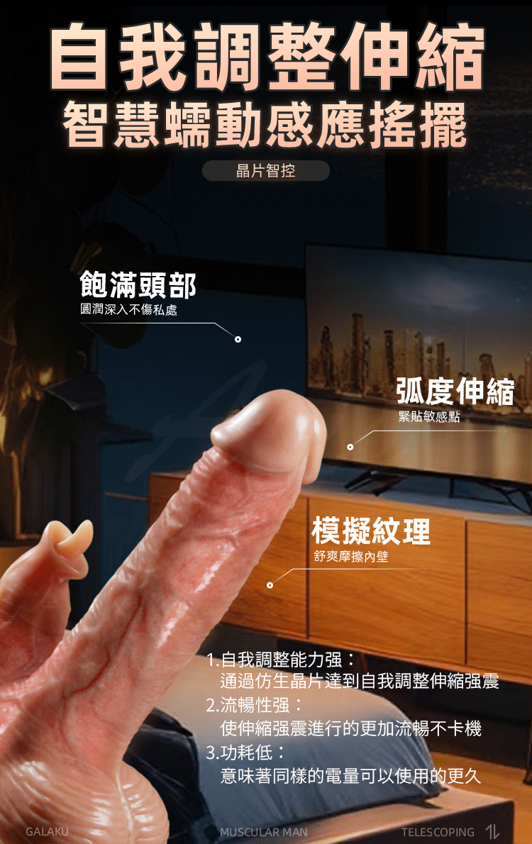 名稱:GALAKU|肌肉男1號 小嘴唇|伸縮震動舌舔伸縮陽具 USB單機