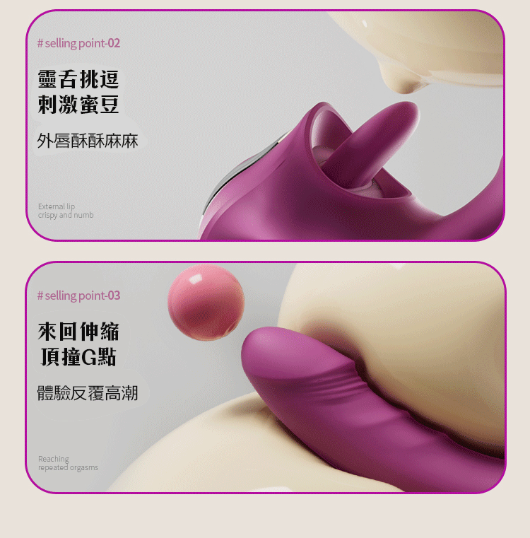 全新升級,舌舔震動搭配伸縮猛插設計,帶來多重快感體驗!