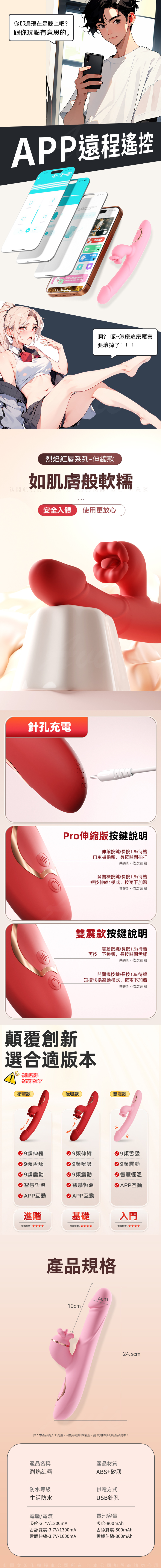 舌舔伸縮震動款:伸縮設計配合舌舔震動功能,讓每次使用都充滿驚喜。