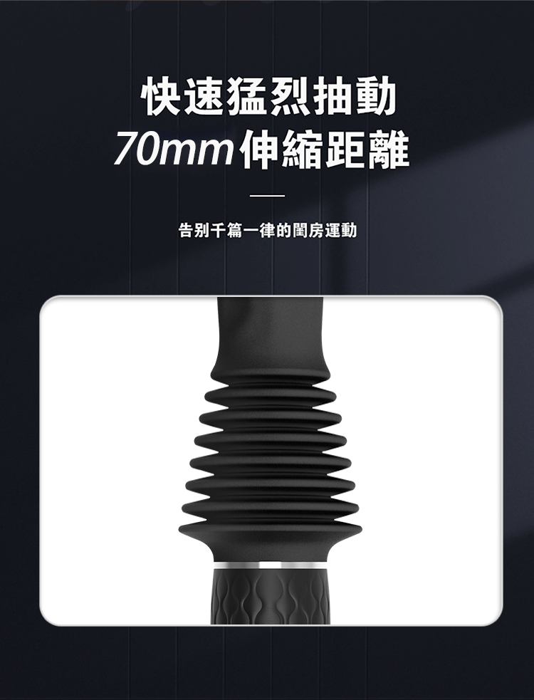 70mm超長伸縮行程,每一次深入都直搗慾望核心。搭載強勁馬達動力引擎,不卡頓、不停擺,讓你在愛的衝刺中無後顧之憂。專為G點設計的激震衝擊,次次精準命中,高潮來得毫不費力!