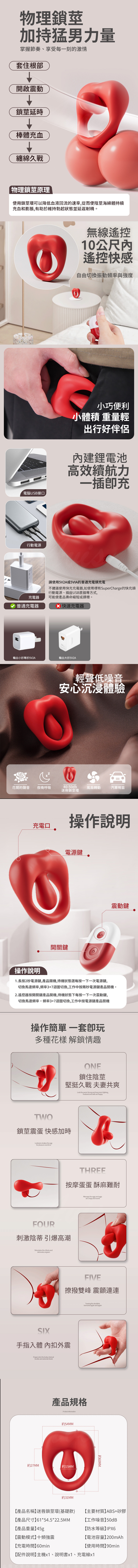 商品名稱:迷唇|10段變頻點觸共震|遙控鎖精震動環