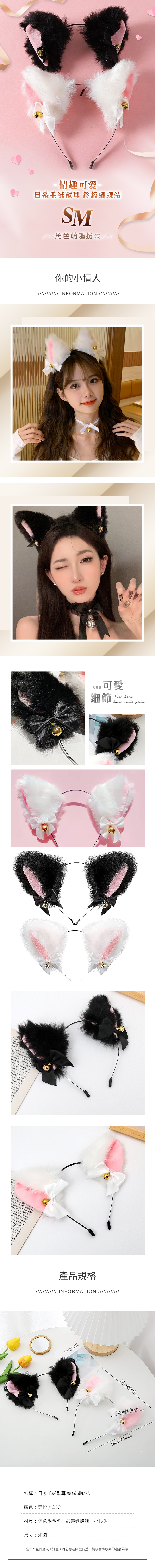 商品名稱 :萌響貓耳鈴|髮箍造型飾品材質:仿兔毛毛料、緞帶蝴蝶結、小鈴鐺顏色:白色、黑色尺寸:髮箍約長15cm單耳約長8cm