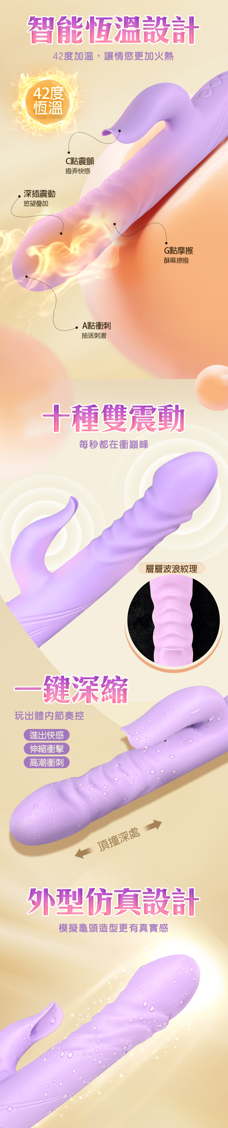 伸縮+震動雙模式設計:內建伸縮馬達,一鍵推進抽送,還原真實進出快感。