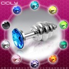 CICILY-松果造型 金屬寶石後庭塞(藍寶石)